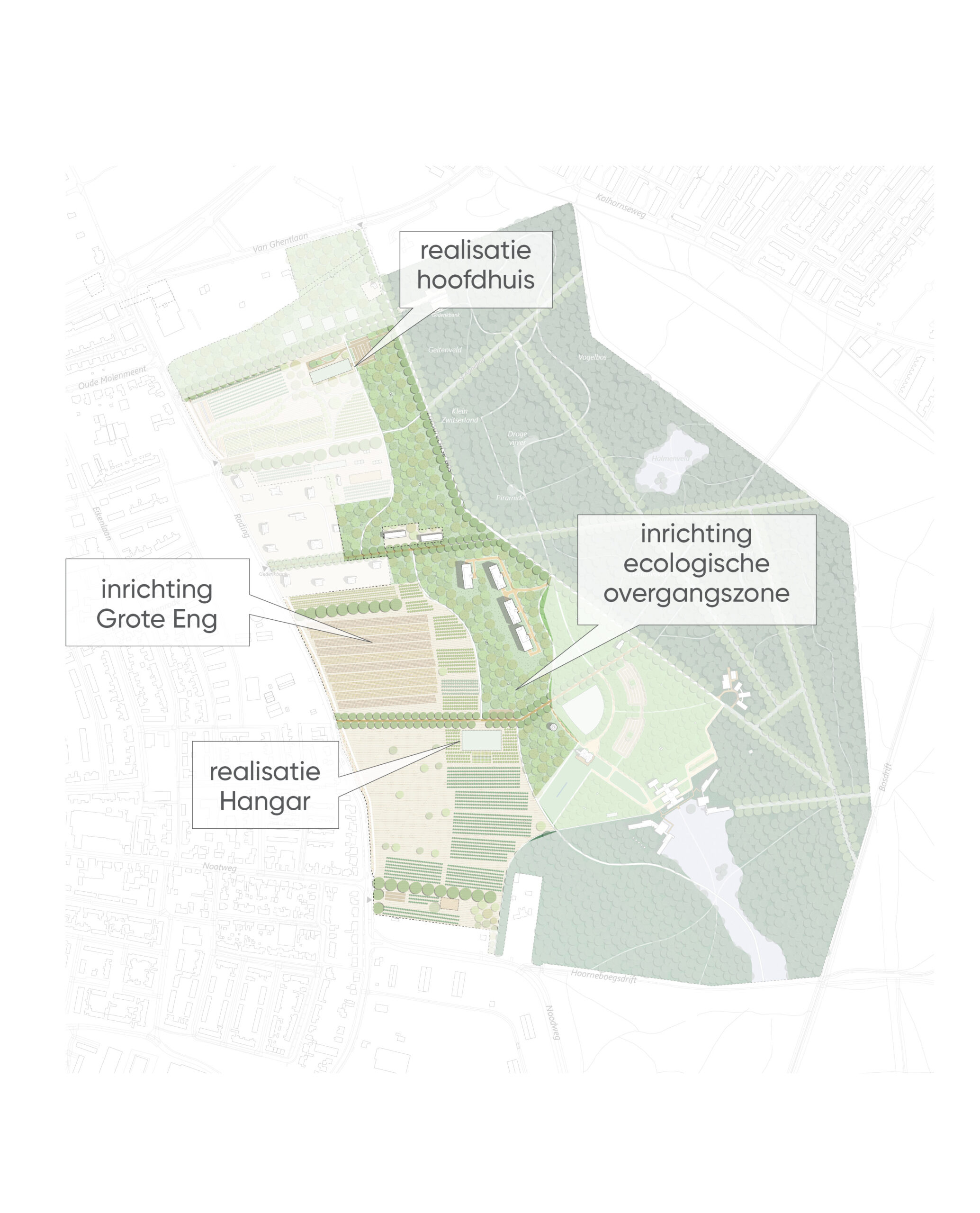 Verschillende partijen op en rond het landgoed krijgen daarom een rol in de organisatie richting de realisatie.